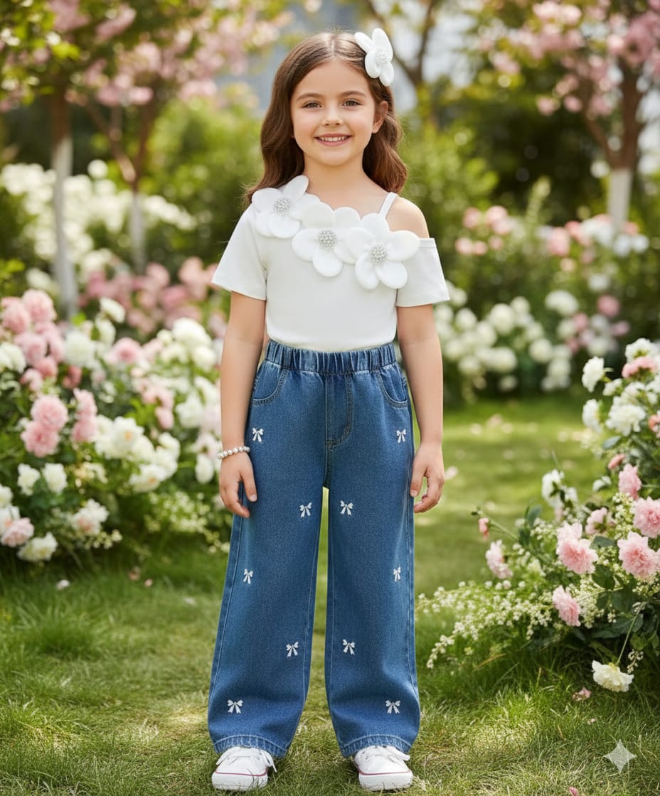 Conjunto Para Niña Blusa Flores Y Jean Bordado